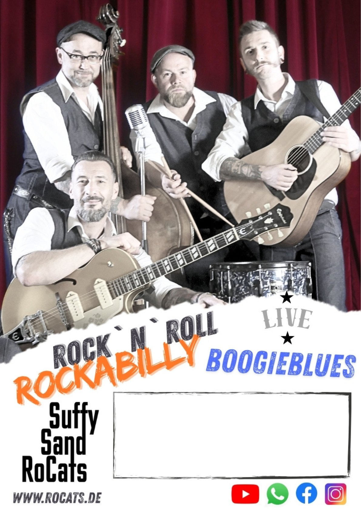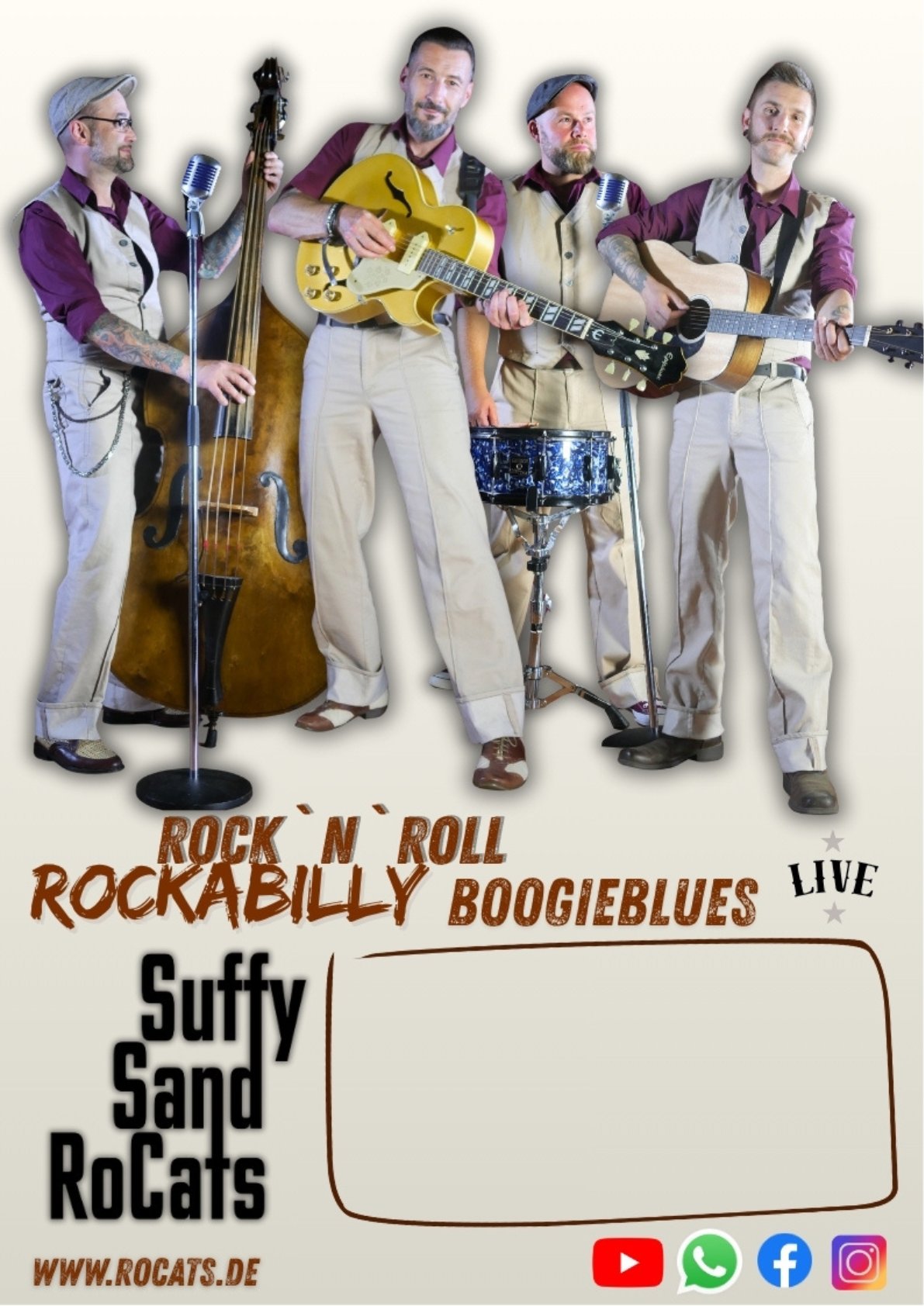 Die Suffy Sand RoCats sind eine dynamische Band, die in der malerischen Region Chemnitz und dem schroffen Erzgebirge ihre Wurzeln hat. Seit ihrer Gründung im Jahr 2017 hat sich die Formation zu einer festen Größe in der lokalen Musikszene entwickelt. Das Besondere an dieser Band ist nicht nur ihre Leidenschaft für Rock`n`Roll und Rockabilly, sondern auch die beeindruckende Erfahrung, die jedes Mitglied mitbringt. Insgesamt summieren sich die Erfahrungen der vier Musiker auf über 100 Jahre Live-Performance – ein Garant für professionelle Auftritte.